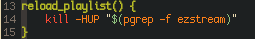 I had to check the man pages of Ezstream to find this out, but Ezstream can actually take commands in a very unusual way, to reload I have to use a SIGHUP, and it will reload and restart the playlist on the next song.