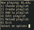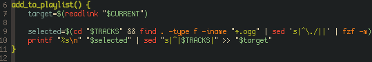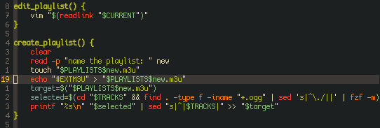 To create a playlist it just asks for a name, uses touch on the directory to create a file, adds a header and then uses fzf to add the songs. Simple Stuff. To edit the playlist manually, Vim is used, since most of the edits will be deleting songs.