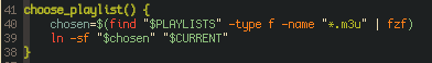 All the playlists are listed using fzf, and when selected a symbolic link is created