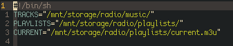 The script starts with declaring paths that will be used plenty on the rest of the script, these include where the songs are located, where the playlists are located and what is the current playlist. As you will see later the playlist is defined by linking the desired playlist to a current.m3u that will be used by ezstream
